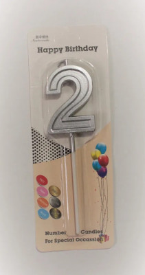 Свеча в торт на шпажке ЦИФРА 2, серебрянный,(*) SG-CC-N3, Китай