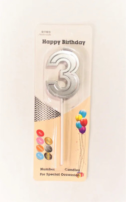 Свеча в торт на шпажке ЦИФРА 3, серебрянный, SG-CC-N3, (*) Китай